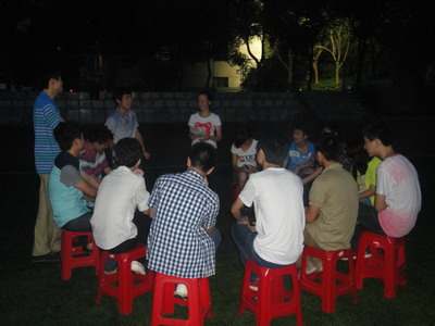 40分钟过去了,30个小组再分为了5个大组,由学工主任李规、干事佘彬和3位辅导员老师分别组织进行第二阶段的讨论,每个小组长和各组学生代表都踊跃发言,五位老师从中进行组织和引导,活动中,平常在班上很少说话的同学也大胆的说出了自己的心里话,活动现场气氛非常轻松活跃。