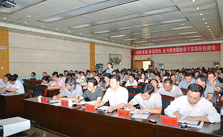 7月9日,我院在主教学楼报告厅召开中心组扩大学习、国家骨干校高职院校项目建设专题培训会议。全体院领导、副科以上中层实职干部、教研室主任、骨干校分项目所在单位负责人、骨干校分项目及子项目负责人、专业建设负责人、精品课程建设负责人、教授、博士参加了会议。