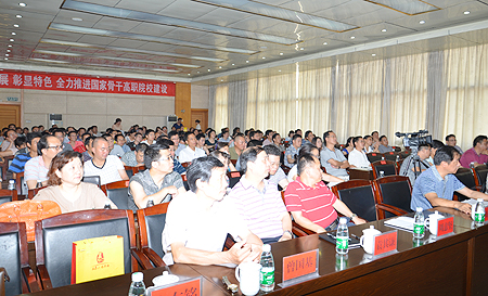 7月12日,湖南省教育科学院职成所刘显泽所长应邀作《现代职业教育背景下高职教学改革的思考》专题讲座,全体院领导、副科以上中层实职干部、骨干校项目所在单位负责人、骨干校分项目、子项目负责人、教研室主任、专业建设负责人、精品课程建设负责人、教授、博士聆听了讲座。