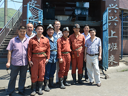 在丰华煤业公司石坝井煤矿,我院煤矿专业教师贺保平、蔡翰庭、李明杰与我院毕业生、在该矿上班的刘双正就今日井下状况进行交流。“这里矿区比较成熟,管理也很规范。我院多名学生在这上班,从事通风、机电方面技术工作,毕业生唐斌更是担任了技术组组长。”贺保平等人介绍说。