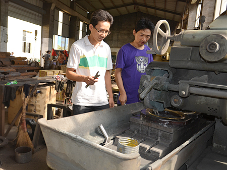 磨床前的吴光辉、康兵老师