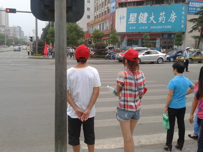 8月20日上午,电信系暑假留在娄底的几位学生干部志愿者自发组织在娄星区步步高广场与中心医院的红绿灯处开展了暑期三下乡娄底创卫行中的推进创卫,倡导文明交通活动。