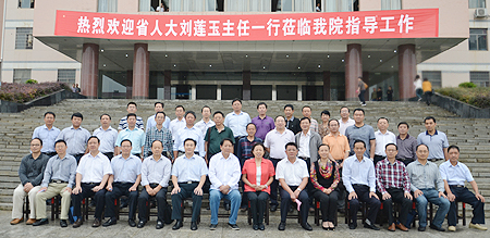 9月4日下午,省人大常委会副主任刘莲玉一行来我院调研。刘莲玉一行在我院党委书记李文莲、院长雷立成陪同下参观了校园并和全体与会人员合影留念。“听说娄底职院建设得很好,早就想来看看。今天看到,果然不错!”