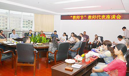 为隆重庆祝第二十九个教师节,9月6日下午,我院在综合楼308会议室召开教师代表座谈会,15位来自教学、学生管理、招生、科研、服务一线的教师代表以“校兴我荣,校衰我耻”为主题,围绕学院的教育教学、管理服务并结合自己的工作谈体会,为学院的建设、发展出谋划策。全体在家的院领导出席,人事处、教务处负责同志与会。座谈会由院党委委员、副院长龙伟主持。
