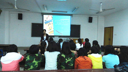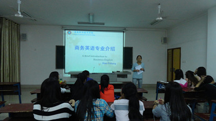 肖主任在主教楼619为商务英语专业的学生进行了专业讲座,她介绍了该专业所开设的主干课程、就业前景、以及应考