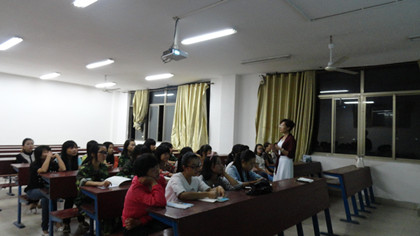 刘主任在主教楼620教室为应用英语专业的学生进行了专业讲座,首先向同学们讲述了高中与大学的区别,接着,她介