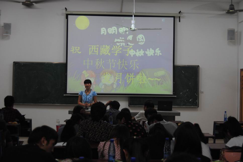 有些西藏学生不太了解中秋节,老师、同学们都详细为他们讲解这个节日的内涵、意义,让他们了解汉族的民俗文化。庆祝会在热烈祥和的氛围下圆满结束。(财贸系)