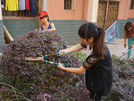 10月11日下午,农林系“快乐剪刀手”志愿者小分队在团总支书记王琦带领下在学生公寓7栋周围的绿化带开展本学期第一次活动。