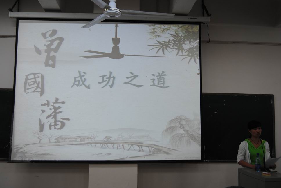 最后,财贸系党总支书记蒋美群作了总结发言:作为一个从湖南偏僻的小山村走出的成功者,曾国藩的成功之道无法复制,但是曾国藩注重人格修养、善于把握机遇、遇挫坚韧不拔、看淡成败得失等特质留给后人很多启示,我们应该从中汲取经验,作为人生的借鉴。(谢乐)