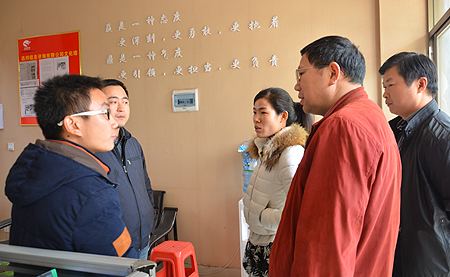12月11日,娄星区人力资源与社会保障局李明正副局长率鄢主任、周主任来到我院,在招生就业处邓明亮老师陪同下考察了我院申请创业扶持项目的5家大学生企业经营状况。