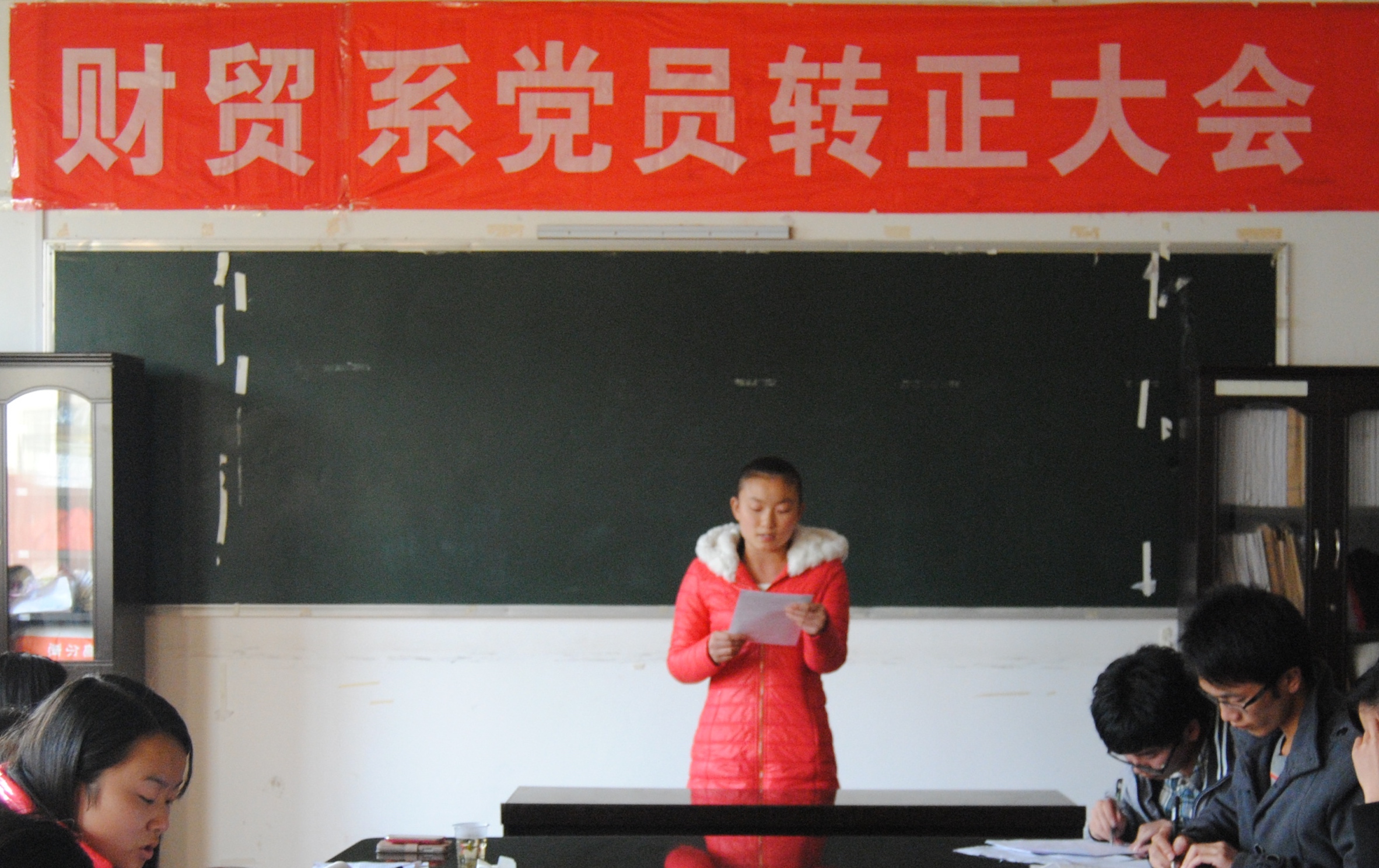为秉承党的宗旨,追随党的领导,12月6日,财贸系预备党员转正大会于实训楼207展开。财贸系党总支书记蒋美群,学生党支部书记刘媛,学生党支部宣传委员成柳才,学生党支部组织委员张雯宇、辅导员谭雪晴等及全体预备党员参加。会议由张雯宇主持。