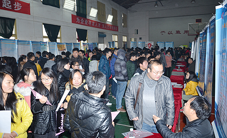 “娄底职院2014届毕业生供需见面会暨娄底市2013年‘走进校园’专场招聘会”由我院与娄底市人力资源和社会保障局、娄底市财政局联合主办。一大早,副市长甘跃华率市教育局、市大中专毕业生就业指导中心等单位领导来到招聘会视察。我院党委书记李文莲等院领导陪同。甘跃华详细了解了参会企业情况,高度评价学院组织有序,各项工作到位。据悉,我院应届毕业生有2716名,已有600人通过班级订单等形式签约。此次参会有152家企业(其中湖南企业68家,娄底企业34家),共提供约7100个岗位。企业提供的岗位涉及电子、机电、建筑、市场营销、网络、酒店管理、旅游管理、财会等专业门类,提供的薪资待遇普遍较好,许多企业给实习生起薪2400元/月,加上各种福利、补贴(如上海大众斯柯达公司转正后提供16个月薪水,富士康科技集团提供非常有诱惑力的薪资待遇,试用期税前综合工资3800-4400元,转正考核后4100-5000元),月均3500元左右。