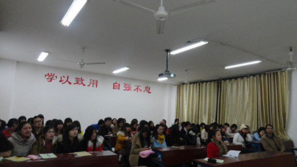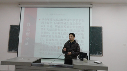 12月23日晚七点,外语系11级毕业生就业指导讲座在主教楼619举行。由招生就业处郭平老师主讲,该系学工主任贺建良及11级全体毕业生聆听了讲座。