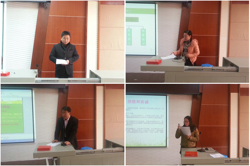 本次比赛选手为该系部全体辅导员、干事、实训室管理员。比赛得到了所有参赛选手的高度重视,赛前大家认真备战,做了大量的准备。比赛中,选手们一边演示PPT,一边简明扼要地从岗位职责、岗位能力、岗位素养、工作方法和技巧、岗位评价、工作总结等方面进行了阐述。