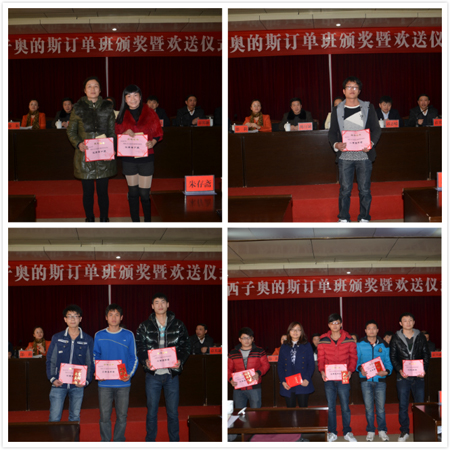 邬莉介绍了评奖办法并宣读获奖名单。根据在校考试成绩与考证成绩及综合评定,确定了十名获奖学员:易龙、陈莫顶、眭巧龙、田超、向登红、郑洁、李蓉、李权、胡潘、谷祥鑫分别获得由西子奥的斯公司提供的一二三等奖学金,唐明月、黄秧春两名老师获得优秀园丁奖,奖金总额10000元。获得一等奖学金的易龙同学作为优秀学生代表在会上发言。