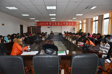 2月21日下午,学工系统在综合楼招聘大厅召开2014年学生工作研讨会。党委委员、副院长刘自斌出席会议并讲话,学工处、团委全体成员,各系学工主任、全体辅导员参加研讨会,会议由学工处处长张一军主持。