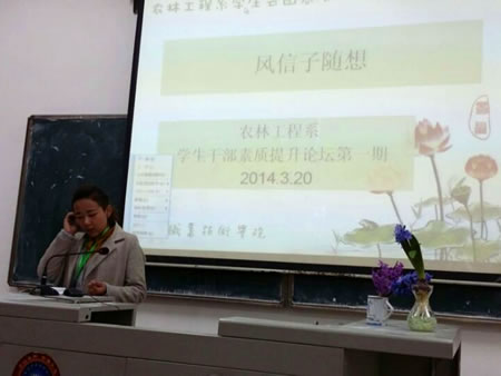 3月20日晚,农林系在主教学楼502室举行学生干部第一期素质提升论坛。系学工副主任易瑜、学工干事颜勤和系学生会团总支全体学生干部参加论坛。论坛由易瑜主持。