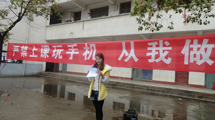 仪式开始,学工主任贺建良对上课玩手机现象宣布了一系列的制度,学生代表蒋国玲针对上课玩手机现象提出以下倡议:要求同学们相互监督,做到上课不玩手机,并养成合理使用手机的习惯。最后,李娇嫩同学带领全系学生宣誓,严禁上课玩手机,从我做起。