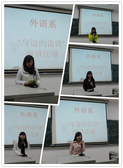 为了学习雷锋精神,弘扬中华的传统美德,外语系于3月30日晚7点半在主教楼620举行了“身边的活雷锋”演讲比赛。学工主任贺建良、辅导员周春红出席比赛并担任评委。外语系全体同学观看了此次演讲比赛。