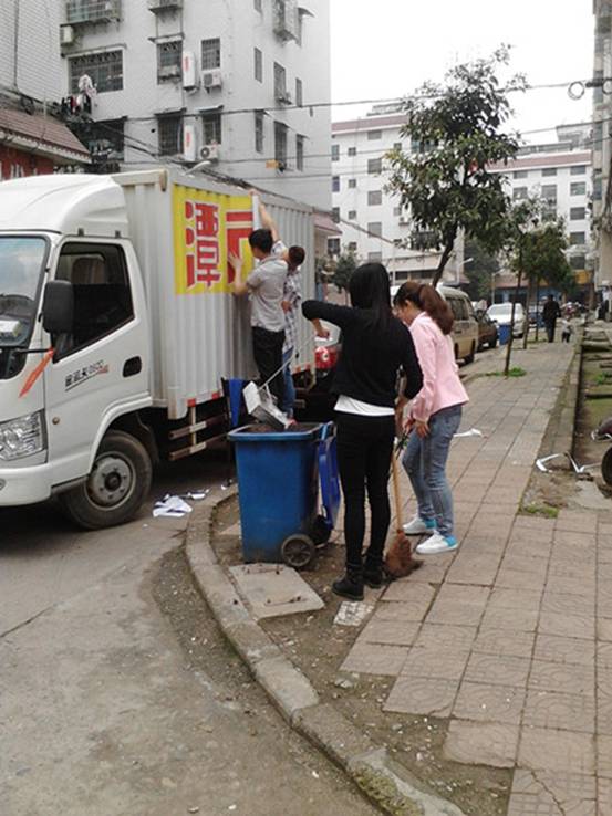 志愿者们手持工具赶往指定地点,到达目的地后,大家分工合作,干得热火朝天。同学们不怕脏不怕累,认真仔细对路面进行清洁,经过志愿者们一个多小时的劳动,很快就使整个社区焕然一新。