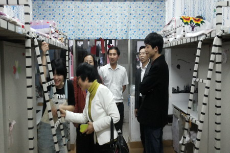 4月15日下午,电信系学工主任李规、学工干事佘彬、全体辅导员与系男、女生干部对本系6栋、7栋、14栋学生寝室进行安全排查。