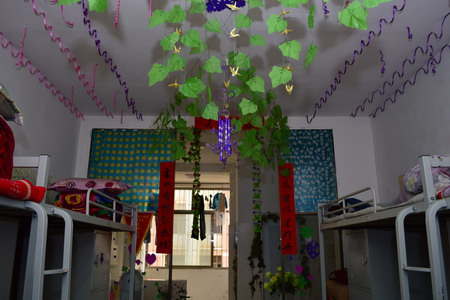 寝室空间布置大赛中,寝室成员各出主意,同学们利用在网上购买的壁纸和小饰品对寝室进行布置,而西藏籍学生将自己寝室布置成具有浓郁民族特色的风格,有的同学利用丢弃的矿泉水瓶制作成吊灯做为装饰,还有很多女同学纯手工制作了剪纸、绿叶和编织花对宿舍进行了装扮。经过十多天的精心准备,每个寝室各具自己的风格和特色,通过系部评比,最终,7栋716和14栋128获得了寝室空间布置大赛一等奖,7栋516、713、715和14栋113分别获得二等奖,7栋512、6栋718、629和14栋115分别获得三等奖。