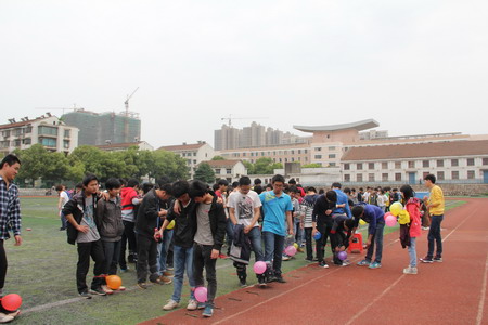 活动开始前,学生会将全系学生以楼栋为单位分为三个大组,寝室成员两人为一队参加活动。活动中,每一队中两人的脚用透明胶绑在一块,再将吹好的气球绑在其中一人的另一只脚上,在主持人一声开始后,同学们刚刚开始显得还有些缅甸和紧慎,但当第一个气球被踩爆了之后,现场的气氛也变得活跃起来,大家扭成一团,活动中充满了笑声,随着啪啪的气球爆炸声之后,渐渐场上的气球也慢慢变少,通过激烈的争夺,最终赵艺、周津玉组合在女生组中笑到了最后,而男生的二组中,许万鹏、杨敏组与彭彪、黄彪组也坚持到了最后。