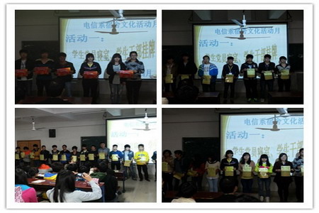演讲比赛后,系部对系列活动中的所有奖项分别进行了表彰。总结中,李规充分肯定了本次宿舍系列活动的开展,并对各项活动分别进行了点评,最后对同学们提出了三点希望,希望同学们以后多参加活动来丰富自己的大学生活;希望各寝室继续保持好本次宿舍文化良好的氛围;希望各班多开展有意义的活动来增加班级的凝聚力。