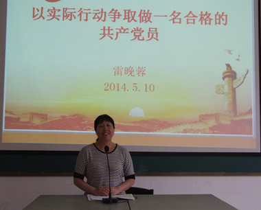 雷晚蓉书记从党的根本宗旨、党员基本条件、认真履行党员义务、正确行使党员权利、按照党员标准严格要求自己五个方面带领大家进行了系统的讲解学习,结合实际工作情况和自身多年的工作经验,指出群众路线是党的生命线,党的工作必须回到人民群众中去,一切为群众的工作都要从群众的需要出发,党员同志要坚持认真学习《党章》,党员、干部始终要围绕“全心全意为人民服务”的宗旨,加强党性修养,以实际行动做一名合格的共产党员。同时教育同学们要大力发扬吃苦耐劳,艰苦奋斗精神,勤俭节约,要牢记人无俭不立,家无俭不旺,做一名合格党员,一名优秀干部。