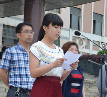 学生代表谢乐同学宣读倡议书
