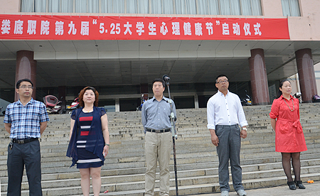 为进一步提升我院大学生心理健康水平,加强大学生心理健康教育工作,营造关爱身边同学心灵的良好氛围,5月14日上午,我院“第九届5.25大学生心理健康教育节”启动仪式在文化广场拉开序幕。院党委委员、副院长刘自斌,学工处处长张一军,学工处副处长罗丽萍、江国元,大学生心理健康教育中心阳帆老师以及全院大学生参加了仪式。仪式由张一军主持。