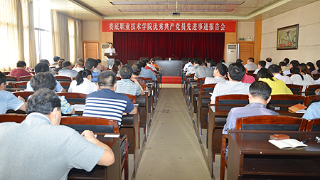 在我院加快改革、发展与建设,争创国家骨干高职院校的过程中,涌现了一大批忠于职守,认真工作,勇于奉献的优秀共产党员。为了认真落实党的群众路线教育实践活动,进一步弘扬社会主义核心价值观,在全院营造奋发向上,积极进取的氛围,学院召开此次优秀共产党员先进事迹报告会,由评建办主任刘跃华、农林工程系曾玉华老师作事迹宣讲。