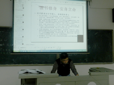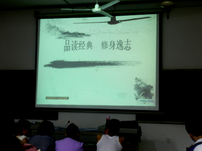 5月25晚7点,建艺系在主教学楼410、411、414、416、402等教室举行“品读经典、修身逸致”“文明上网快乐生活”主题班会,本次班会由辅导员主持,各班全体同学参加。学生在辅导员老师精彩的讲课中了解到学习经典书籍可以提高自己的文化修养,使自己受益终生。