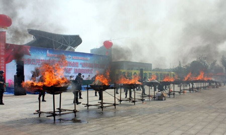娄底市委、市政府领导,群众代表,学生代表,禁毒志愿者,“妈妈禁毒联盟”妇女代表,娱乐场所等行业代表5000余人参加了此次启动仪式。活动现场由民警公开焚烧销毁了全省近年来缴获的部分毒品共计120余公斤。(刘艳)