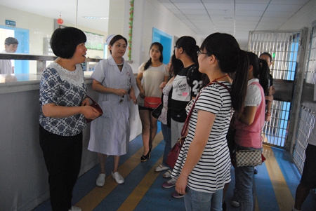 康复医院唐主任给志愿者们仔细讲解了接触与照顾病人的具体细则。其间,为了让我们的志愿者们对各个服务项目都有较清楚的认识和了解,培训会上还特别加入了情景模拟环节,院方医护人员就病患,志愿者、医生、护士等具体服务工作做了现场模拟表演。大家认真观看,并将注意细节和事项做好笔记。培训结束后,唐主任带领大家参观了医院。