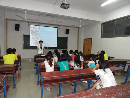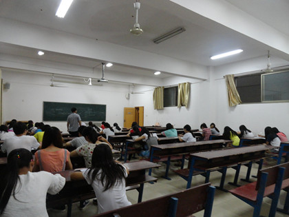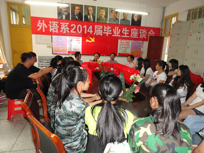 9月4日晚7点,外语系2014级新生专业教育讲座分别在主教楼411、406举行,系主任刘燕,学工主任贺建良,教学主任肖付良,辅导员周春红老师,教研室主任谢杰、谢丹和助理班主任参加,2014级全体新生聆听了讲座。