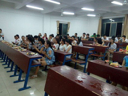 9月8日下午五点,武汉海天世纪领导与2014级海乘班同学在系议室共庆中秋佳节。学工主任贺建良、辅导员周春红、海天世纪领导及海乘班全体学生参加。