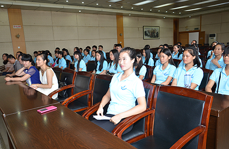 9月9日晚7点,外语系新生《学生手册》学习讲座在主教楼406举行,学工主任贺建良主持,辅导员周春红、助理班主任以及14级全体新生参加。