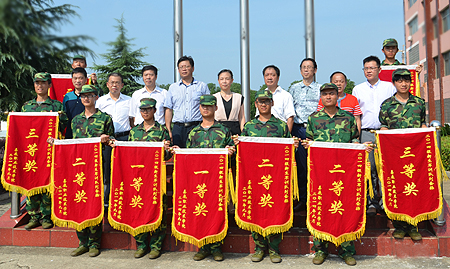 院党委委员、副院长周志和主持仪式,宣布机电工程系五排、财经贸易系十七排等获得军训队列会操优秀团队荣誉,外语系1栋105寝室等获得内务整理优秀寝室称号。领导们为获奖单位颁奖。