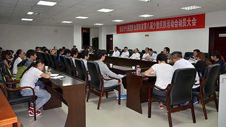 9月29日晚,我院综合楼招聘大厅内灯火通明,娄底市代表团参加湖南省第八届少数民族运动会动员大会在此召开,标志着我市备战省“少运会”工作已进入最后冲刺阶段。娄底市民宗局局长曾志君、副局长佘国云,我院副院长龙伟、周志和,娄底市体育局纪检组长闭汉辉、群体科科长付国俊出席,民宗局相关工作人员,我院教务处、学工处、各系部主要负责人及代表团全体成员参加。动员大会由我院公共课部主任付鹏主持。