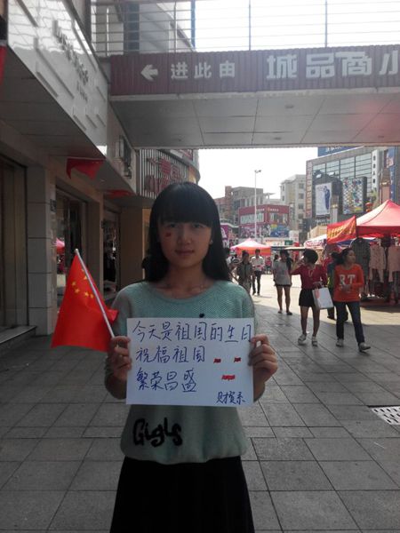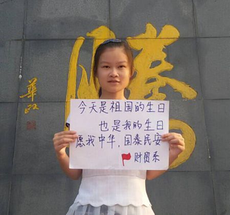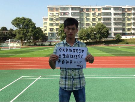 中华人民共和国成立65周年之际,娄底职院财贸系的学子们以别样的方式表达了自己对祖国的祝福。
