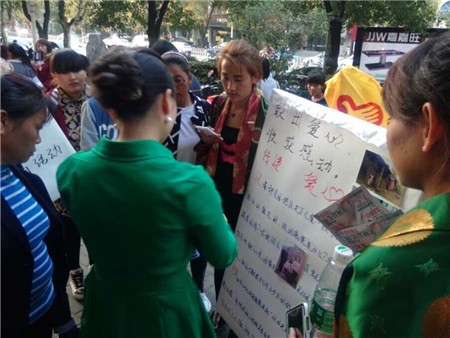 10月25日,农林系13级畜牧2班班长嘎松塔措带领全班学生来到石马公园和春园步行街为抚州小学困难学生谢心宇进行募捐。