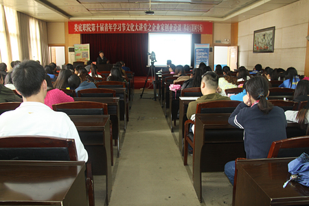 为了帮助我院毕业生准确确定就业方向、指导他们走好从大学到社会的重要一步,10月30日下午2:30,由院团委、学工处主办,财经贸易系承办,招生就业处、电子信息工程系协办的第十届青年学习节文化大讲堂之企业家创业论坛(移动互联网专场)在我院多功能报告厅隆重举行。湖南正阳大学生创业管理有限公司总经理李人民、娄底市电子商务协会秘书长王建明、腾讯微云娄底运营总监邹曙光、我院团委书记欧芳、招生就业处处长戴志鹏、副处长王少英、财贸系副主任肖宏华,院团委、招就处相关工作人员出席,讲座由欧芳主持,娄星区科技局副局长李健主讲。电信系、财贸系12级相关专业学生聆听了讲座。