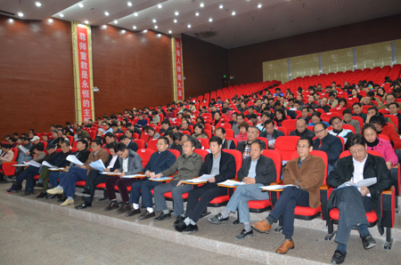 11月13日,我院召开党的群众路线教育实践活动总结大会。省委派驻娄底督导组常务副组长、省政协常委、省政协经科委兼职副主任向邦柱,市委第六督导组组长、正厅级干部、市政协党组成员、原副主席刘志伟,市委第六督导组常务副组长、市政府专项顾问、电子政务管理办公室原主任、党组书记罗风帆及其他省市督导组成员,我院全体院领导,副科级以上干部,正高职称代表,离退休老同志代表,全院教职工党员,在校学生党员代表等近400人参加大会。大会由党委副书记、院长雷立成主持。