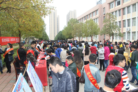 11月26日,以娄底市花山办事处行政主任李国雄、政法书记刘东胜领队的宣传小组进入我院开展“蓝洁行动再升温”禁毒签名进校园活动,我院保卫处处长张明、保卫处相关同志、我院学生志愿者在知行路活动现场进行协助。活动吸引了我院大批师生现场观看和签名。