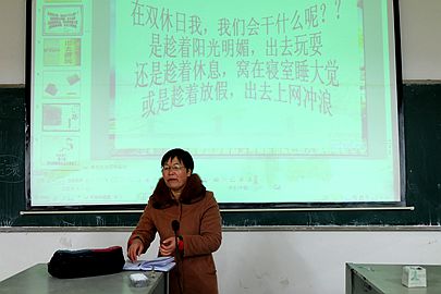 12月14日晚8:00外语系于主教楼318开展了以“我的双休日”为主题的班会,参加班会的有辅导员周春红老师及外语系学生。班会由周老师主持。