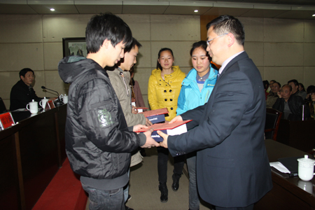 雷立成在讲话中对全体获奖者表示祝贺,他指出,开展校企合作办学,对学生进行订单式培养是我院多年来始终坚持的一条成功办学之路,我院将始终严格按照企业长远发展的实际需求,严把生源选择关,严把教育教学关,严把企业文化熏陶关,努力把创维订单班学生培养成综合素质高、文化意识浓、企业用得上、留的住得创维“终生员工”。(张翔 易玉娇 周亚菊 龙旭 李志林)