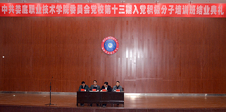1月15日,我院第十三期入党积极分子培训班结业典礼在新培训楼报告厅隆重举行。院长雷立成,副院长颜彩飞、周志和,党委委员、党校校长梁凌洁出席,组织人事处、宣传统战部、学工处、团委、教务处负责人,各系党总支书记、学工主任,院党校、分校、各系党总支相关人员,特邀党建组织员及全体学员参加。典礼由颜彩飞主持。