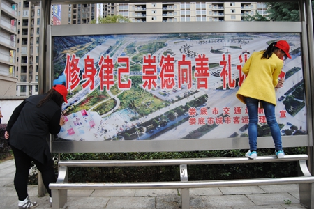 3月18日,财贸系志愿者们将“雷锋精神我传承”签名活动时的意念践行到实际当中,对学校周围公交车站台进行清洁。活动中同学们热情洋溢,干劲十足。志愿者们的活动不仅受到了市民的赞扬还得到了环卫工人的赞许。