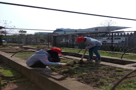 为迎接三月雷锋月,发扬雷锋精神。3月12日财贸系志愿者们义务劳动在农林系实训基地顺利展开。